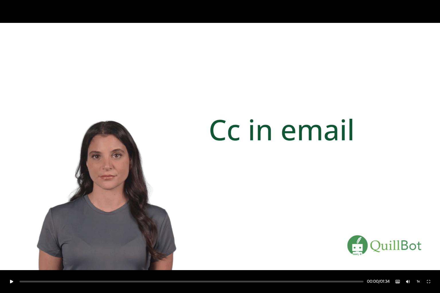 0:00 “Cc” means “carbon copy” or “courtesy copy.” It’s one of the fields you can use when sending someone an email. I’m Eva from QuillBot. Let’s take a look at how “cc” works and how to best use it.