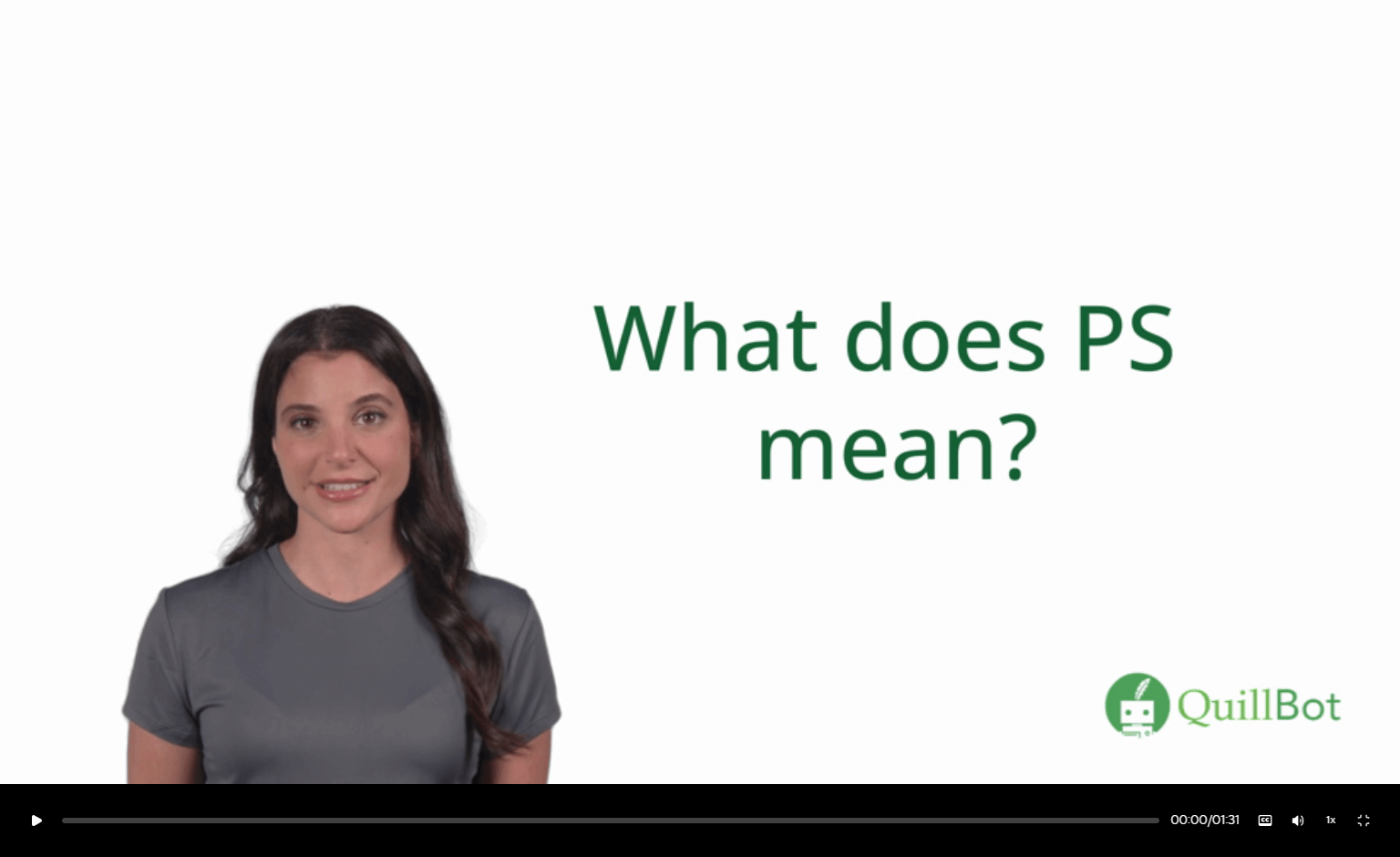 0:00 “PS” is an abbreviation for “postscript,” which is text written after the main body of a piece of writing. I’m Eva from QuillBot. Let’s look at what “PS” means, how to write it, and when to use it.
