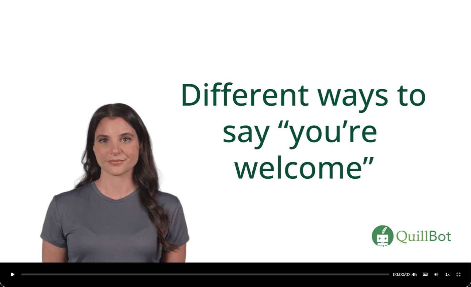 Different Ways to Say You're Welcome | Video Overview Published on August 21, 2025 by QuillBot QuillBot The QuillBot team provides expert tips on grammar, style, citation, and research. Our easy-to-use tools and resources help our readers communicate with confidence.