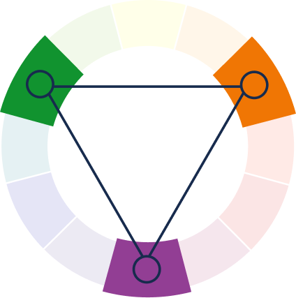 Three colors, evenly spaced on the wheel offer contrast.