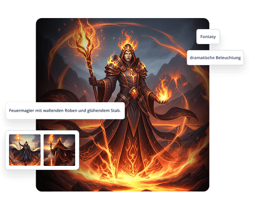 Erstelle und bearbeite neue Bilder in Sekundenschnelle. Kein tagelanges Warten auf Freigaben, stundenlanges Retuschieren oder minutenlanges Zwischenspeichern mehr. Einfach beschreiben und erstellen. So einfach geht's.