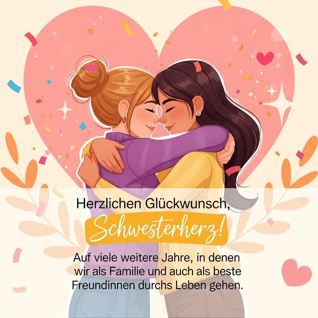 - Herzlichen Glückwunsch, Schwesterherz! 🎂 Ich wünsche dir einen Tag voller Liebe und Lachen!
