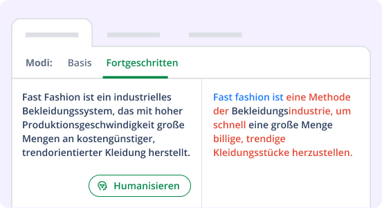 Durch die Humanisierung bleibt dein Text weitgehend unverändert, aber es werden Dinge wie Satzstruktur und -länge sowie die Wortwahl geändert, um die eindeutigen „Merkmale“ der KI zu entfernen.