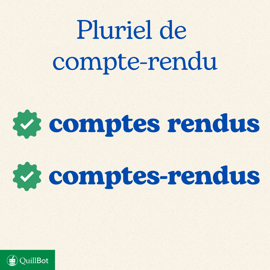 Au pluriel, le nom commun compte rendu prend toujours deux « s ». Deux orthographes sont cependant admises : l’une avec trait d’union, et l’autre sans.