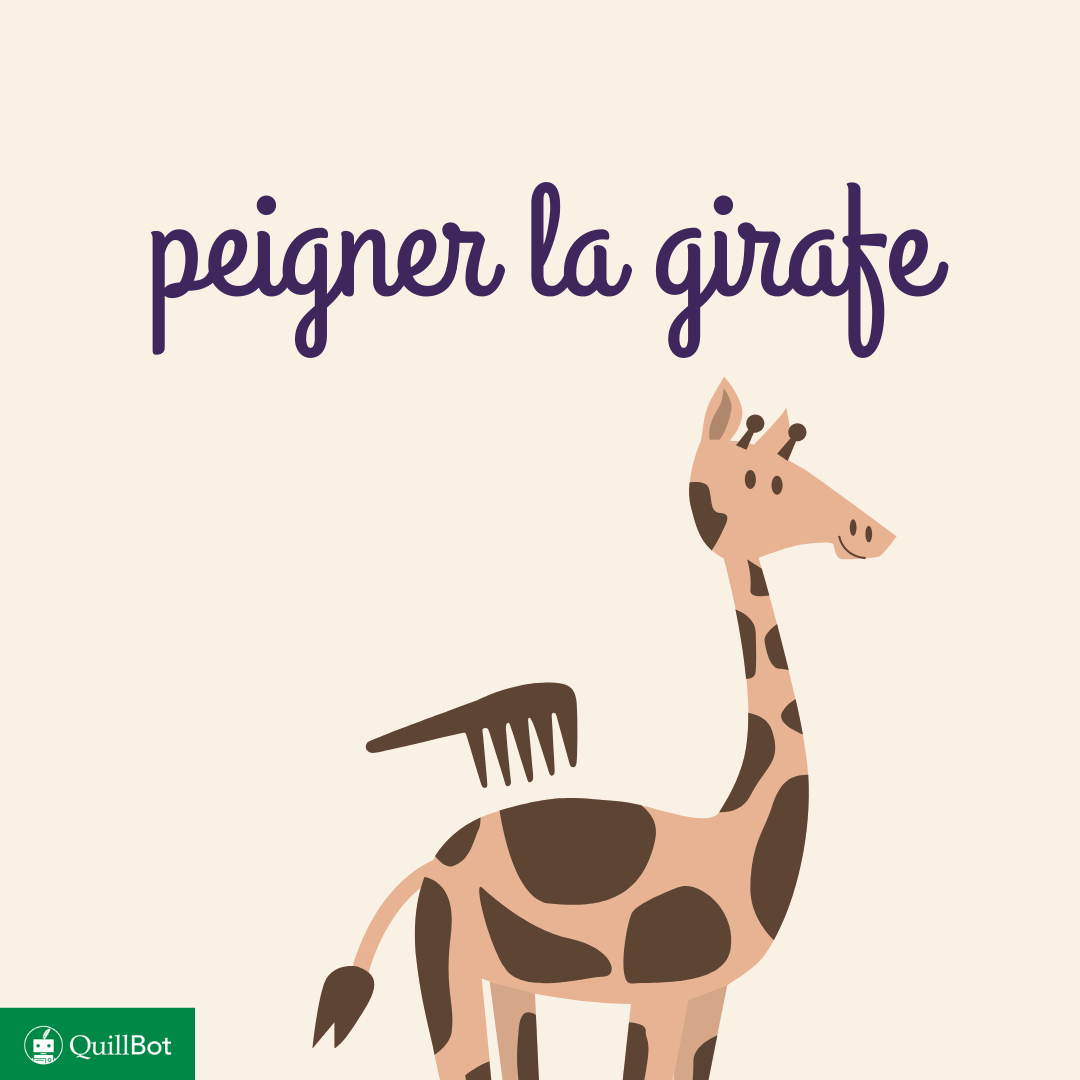 Tautou, A. (2025, 12 September). Peigner la girafe : définition et origine de l’expression. Quillbot. Date : 10 octobre 2025, issu de l’article suivant : https://quillbot.com/fr/blog/locutions-et-expressions-francaises/peigner-la-girafe/