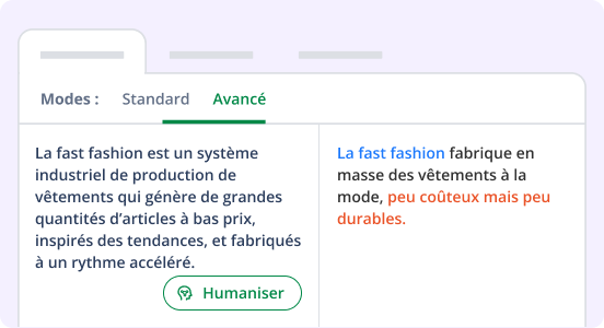 Commencez gratuitement avec notre Humaniseur de base, ou passez à la version Premium pour des réécritures plus approfondies et un texte encore plus naturel et fluide en mode Avancé.