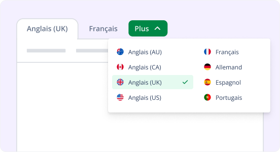 Humanisez le texte généré par l’IA en espagnol, allemand, français, portugais et dans quatre variantes de l’anglais (US, UK, AU et CA).