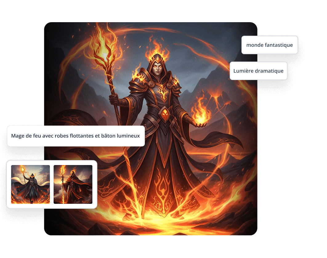 Générez instantanément des images uniques qui augmentent l’engagement et les clics.